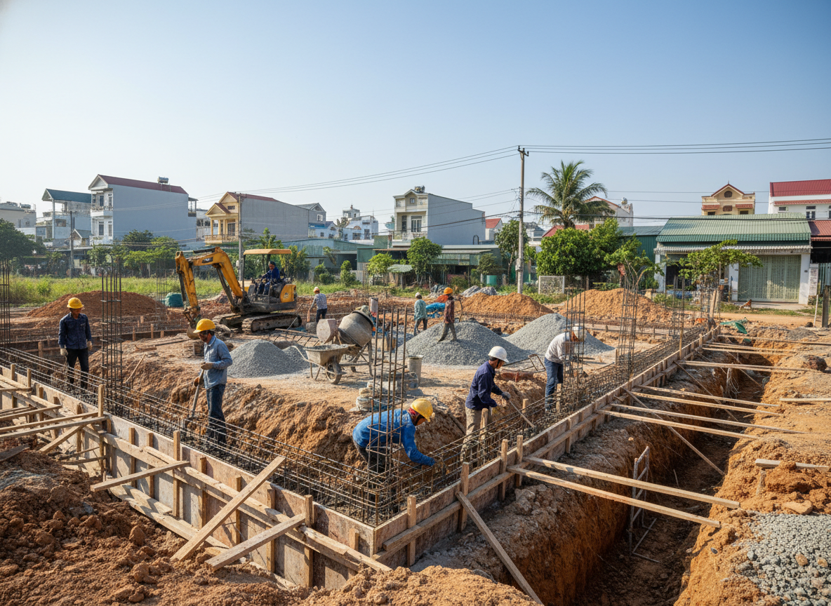 Móng nhà là nền tảng chịu lực của toàn bộ công trình. Một hệ móng được thi công đúng kỹ thuật sẽ đảm bảo công trình bền vững trong nhiều năm.